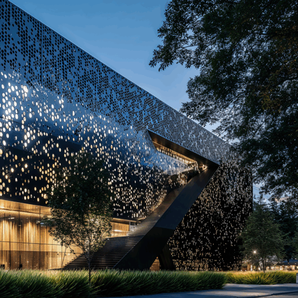 The atmosphere is the final, crucial layer. The “after rain” setting, with its wet pavement mirroring the spotlights, and the stillness of the night, creates a sense of a private viewing. It is a moment of unveiling, where the architecture is presented not just as a place to live, but as a piece that has just been completed, waiting for its life to begin.